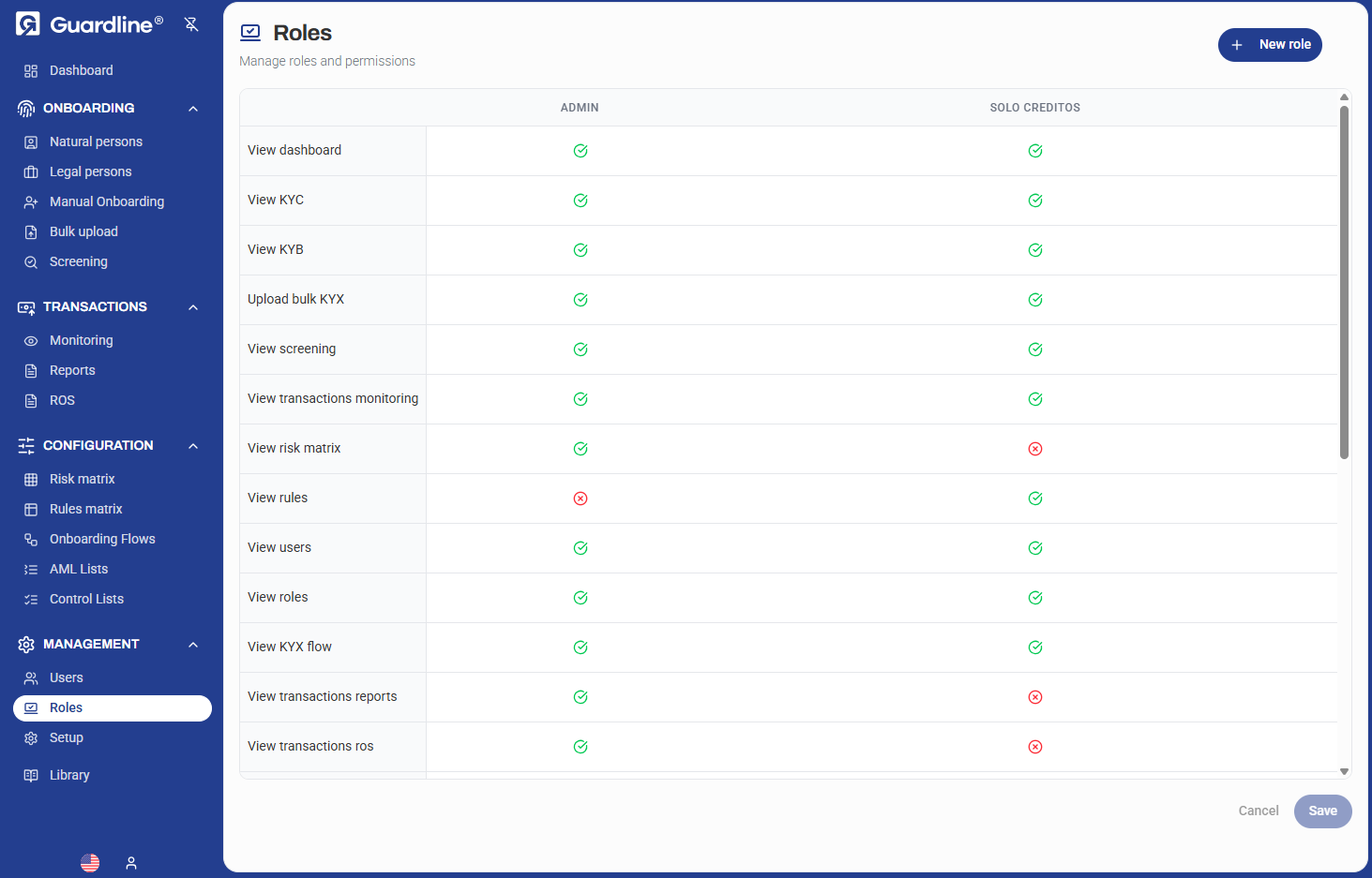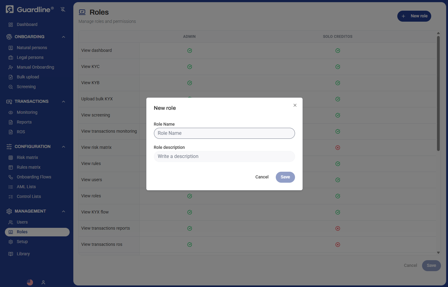 - Enter a Role Name (e.g., "Analyst", "Compliance Officer", "Auditor")